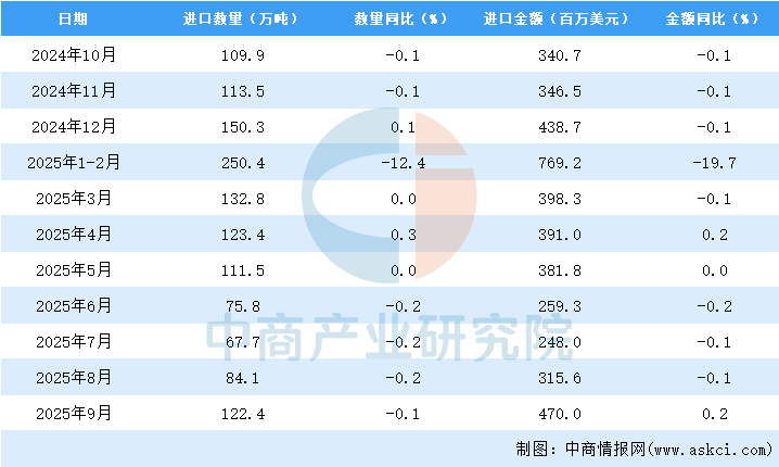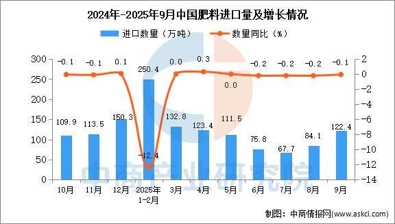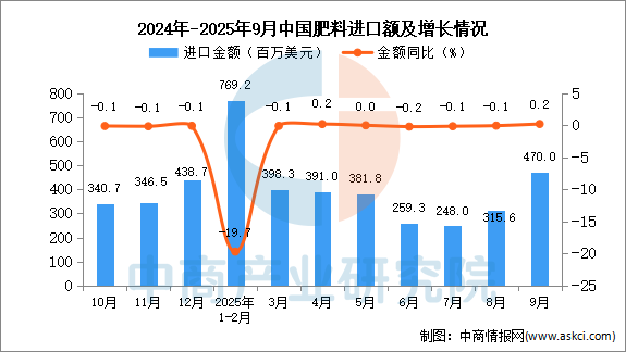 2025年9月中國(guó)肥料進(jìn)口量及金額增長(zhǎng)情況