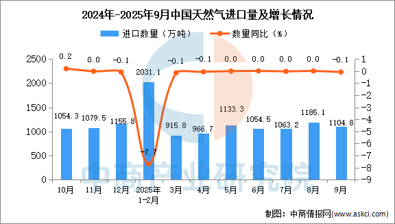 2025年9月中國(guó)天然氣進(jìn)口數(shù)據(jù)統(tǒng)計(jì)分析:進(jìn)口量1104.8萬(wàn)噸