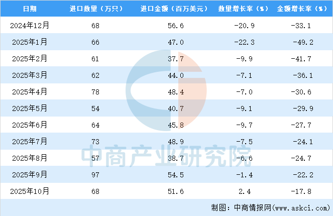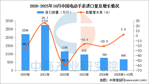 2025年10月中國電動(dòng)手表進(jìn)口量及金額增長情況
