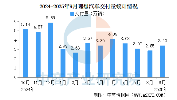 中商情報(bào)網(wǎng)訊:2025年9月,理想汽車交付新車3.40萬(wàn)輛,環(huán)比增長(zhǎng)19.0%,同比減少36.8%。2025年第三季度,理想汽車交付9.32萬(wàn)輛。2025年1-9月,理想汽車交付新車29.71萬(wàn)輛,同比減少13.1%。截至2025年9月30日,理想汽車歷史累計(jì)交付量為143.10萬(wàn)輛。