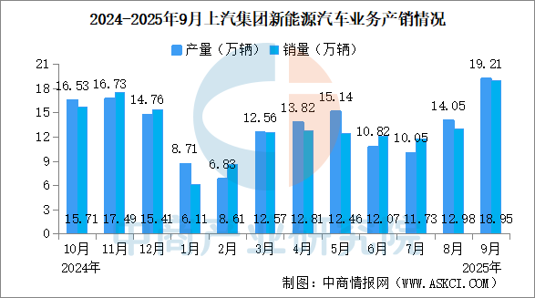 9月,上汽集團(tuán)新能源汽車產(chǎn)量19.21萬輛,同比增長35.16%。銷量18.95萬輛,同比增長46.54%。1-9月,上汽集團(tuán)新能源汽車?yán)塾嫯a(chǎn)量111.34萬輛,同比增長45.55%。累計銷量108.28萬輛,同比增長44.76%。