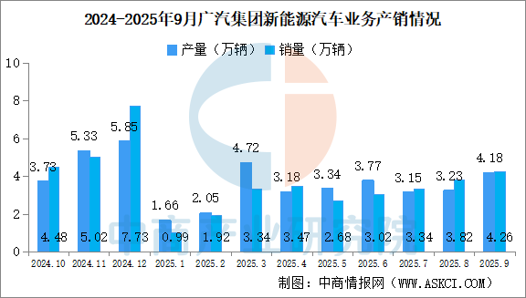 2025年9月,廣汽集團(tuán)新能源汽車產(chǎn)量4.18萬(wàn)輛,同比增長(zhǎng)28.33%。銷量4.26萬(wàn)輛,同比減少9.24%。2025年1-9月,廣汽集團(tuán)新能源汽車產(chǎn)量29.28萬(wàn)輛,同比增長(zhǎng)1.97%。累計(jì)銷量26.83萬(wàn)輛,同比減少4.99%。