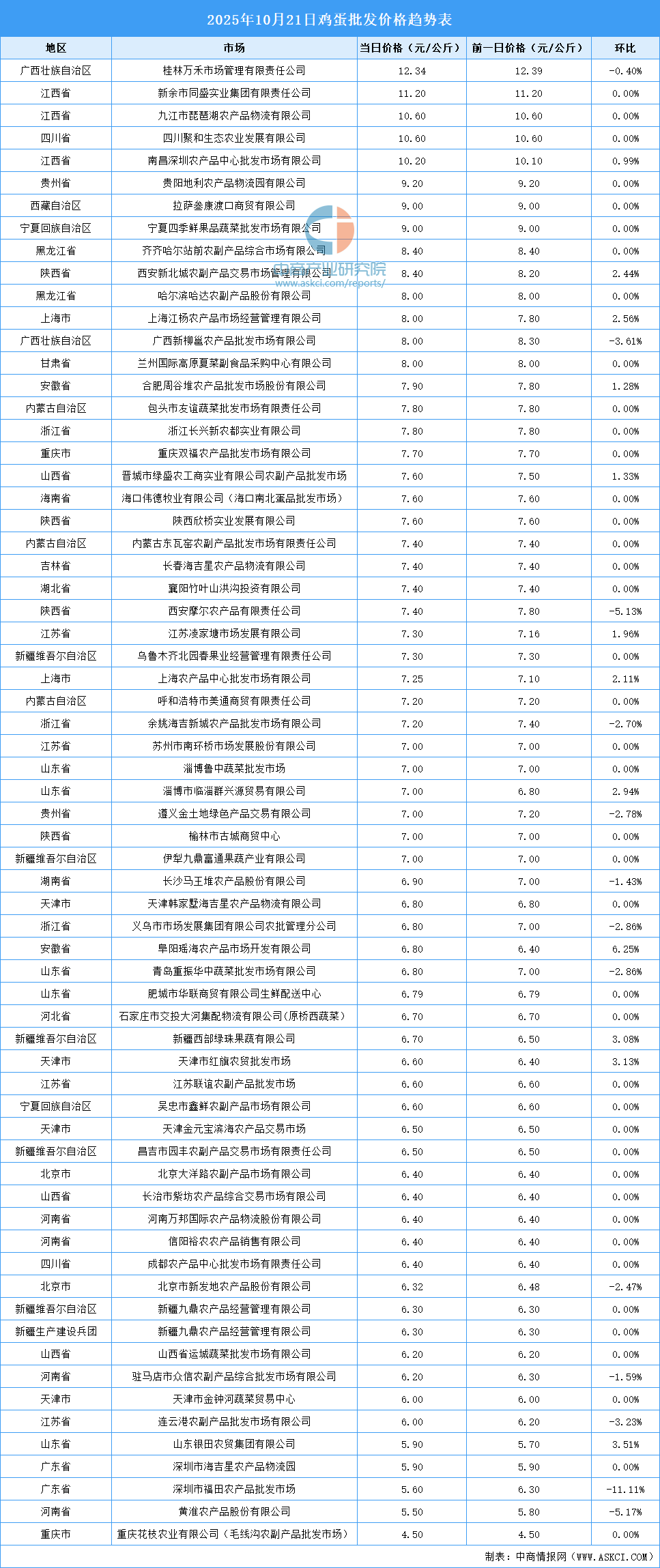 2025年10月22日全國(guó)各地最新雞蛋價(jià)格行情走勢(shì)分析
